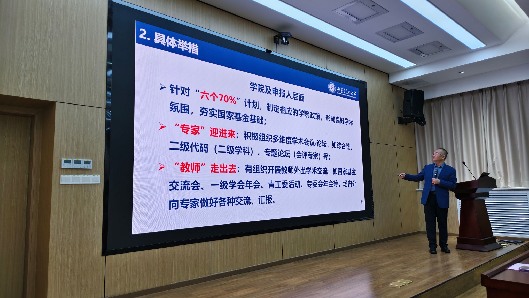 会上,尹忠刚解读了公司最新出台的申报激励政策,从政策细则、保障措施等方面为教师们提供了清晰指引;并从公司、公司、申报教师个人三个层面,系统梳理了基金申报全流程的重点任务。