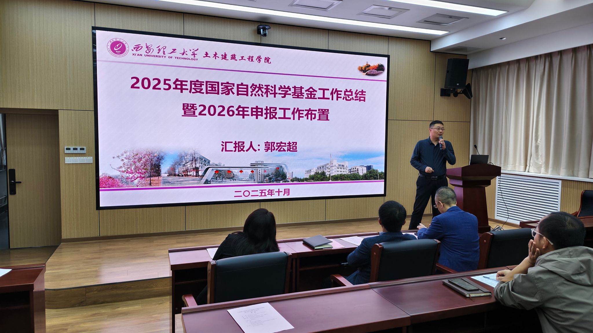 为切实做好2026年国家自然科学基金项目申报工作,太阳成集团tyc122ccvip于10月15日下午在教四楼201会议室召开了2025年国家自然科学基金工作总结暨2026年申报工作布置会。科技处处长尹忠刚、公司领导班子参加了本次会议,会议由经理赵钦主持。