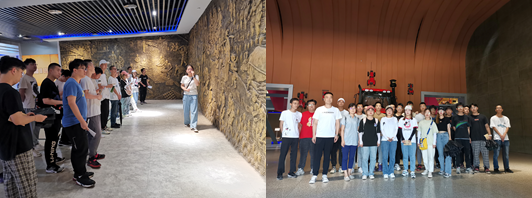 7月11日到达一拖实习中心并进行了安全教育之后,参观了东方红农耕博物馆。该馆收藏了中国第一代履带拖拉机、中国第一代水旱两用轮式拖拉机、中国第一代小型轮式拖拉机、中国第一代大功率轮式拖拉机等众多有历史意义的农业机械,一台台展车见证了中国农业机械化的发展过程。通过了解悠久的农耕历史,深刻体会劳动人民的智慧和力量,切实感受工匠精神的伟大和崇高,推动劳动精神的实践和弘扬。在馆区内,同学们详细了解了华夏农耕战区的二牛抬杠等传统农具的演变以及建国初期的农业化,参观了奠定中国农机工业基础的洛阳铲、中国一拖厂在各个历史时期的农用机械;观看了党和国家领导人到一拖厂视察的珍贵照片,领会了周总理亲自批示的“三个第一”(出中国第一的产品,育中国第一的人才,创中国第一的业绩)的深刻内涵,感受了中国农业机械化的丰硕成果。