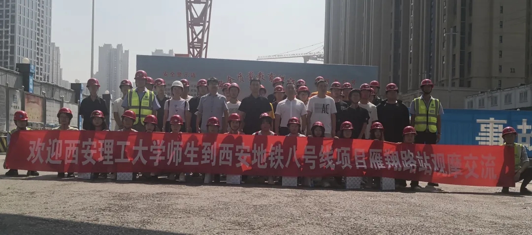 在现场参观环节,同学们分组参观了已运营的六个地铁车站并绘制平面布置图,实地体会了幸福林带地下综合体工程,现场观摩了地铁八号线雁翔路车站深基坑施工工法。