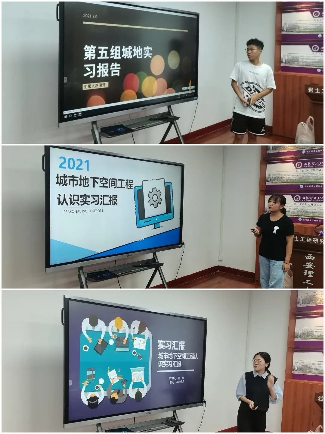 在汇报总结环节,指导教师详细讲解了实习汇报内容和汇报方式,要求六个小组组长从现场参观、专家讲座和工程录像三个方面依次对实习内容进行汇报。